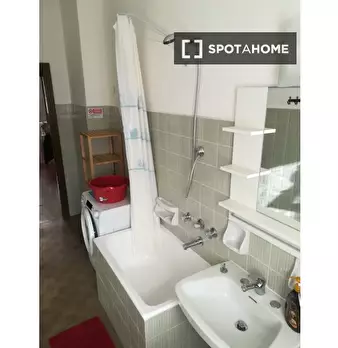 Questa stanza in affitto in un appartamento condiviso con 4 camere da letto è ideale per professionisti e studenti. L'appartamento è completamente arredato e dotato di comfort moderni, tra cui lavatrice privata, lavastoviglie, forno e TV. Altri co...