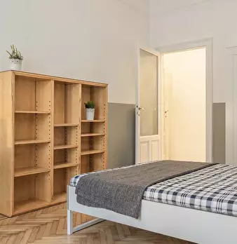 Questa è una stanza in un appartamento condiviso con 6 camere da letto situato a Greco, Milano. L'immobile è completamente arredato e dispone di una cucina attrezzata. Le coppie non sono ammesse; solo professionisti e studenti possono affittare qu...