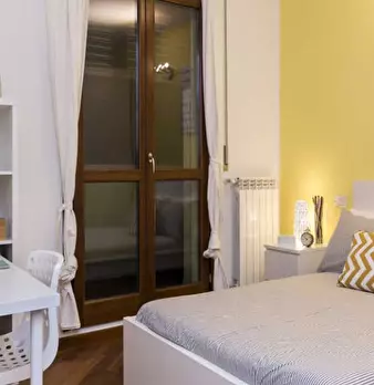 Scopri questa stanza completamente arredata e attrezzata in un appartamento condiviso con 4 camere da letto a Giambellino, Milano. L'appartamento è dotato di ascensore, lavatrice privata, lavastoviglie, forno e include tutti i servizi essenziali c...