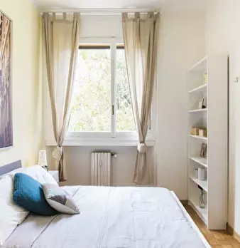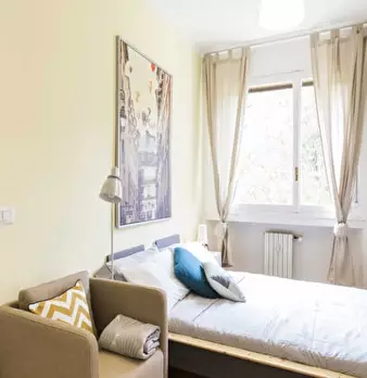 Questa è una stanza in un appartamento condiviso con 2 camere da letto situato a Bovisa. L'appartamento è completamente arredato e dispone di lavatrice privata, TV, lavastoviglie e forno. L'aria condizionata centralizzata è disponibile in tutta la...