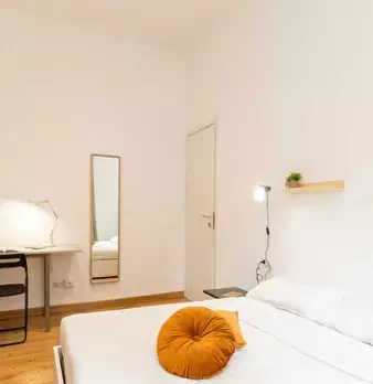 Questa camera arredata in un appartamento condiviso con 5 camere da letto è la scelta ideale per chi cerca un alloggio a Lodi-Corvetto, Milano. L'appartamento è dotato di riscaldamento centralizzato e ascensore. Le aree comuni includono una cucina...