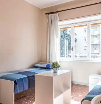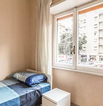 Questa camera condivisa si trova in un appartamento con 3 camere da letto nel vivace quartiere di Trieste, a Roma. Completamente arredata per il vostro comfort, la camera offre servizi utili come una lavatrice per uso privato, un impianto di risca...