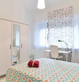 Questa è una stanza in un appartamento condiviso con 5 camere da letto situato a Garbatella, Roma. L'appartamento è completamente arredato e offre servizi come ascensore, cucina attrezzata, TV e lavastoviglie. La biancheria da letto è fornita e in...