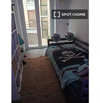 Questa confortevole camera in un appartamento condiviso con 7 camere da letto a Malafede è completamente arredata, dotata di riscaldamento a gas naturale e cucina attrezzata per la vostra comodità. Godetevi l'accesso a un balcone privato e la poss...