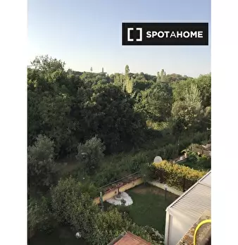 Vivi un soggiorno confortevole in questa stanza completamente arredata all'interno di un appartamento condiviso con 3 camere da letto situato nel quartiere Portuense, a Roma. L'appartamento dispone di cucina attrezzata, lavatrice e asciugatrice pr...
