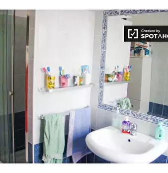 Spotahome presenta questa stanza interna in un appartamento condiviso con 5 camere da letto a D. Bosco, Roma. Completamente arredato e con accesso tramite ascensore. Le caratteristiche includono una cucina attrezzata, una lavatrice privata, un bal...