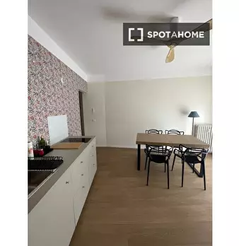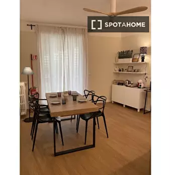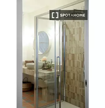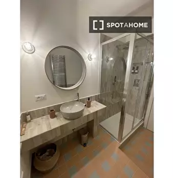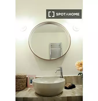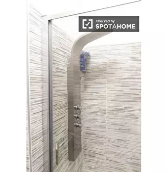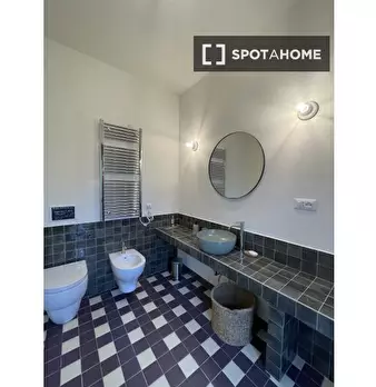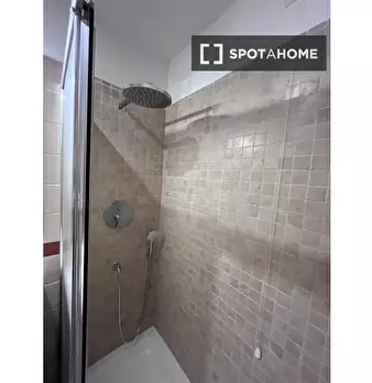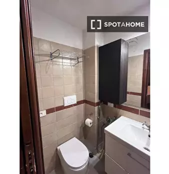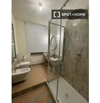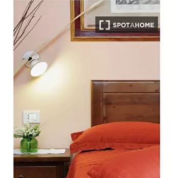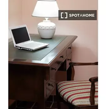 Questa stanza si trova in un residence condiviso con 33 camere da letto situato a Portuense, Roma. La stanza è completamente arredata, offrendo agli inquilini una soluzione pronta all'uso. Il residence dispone di cucina attrezzata, riscaldamento c...