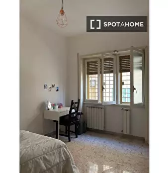 Esplora questa accogliente stanza in un appartamento condiviso con 4 camere da letto situato nel Quadraro-Quartiere Tuscolano, a Roma. L'immobile è completamente arredato e offre servizi essenziali come aria condizionata individuale e riscaldament...