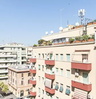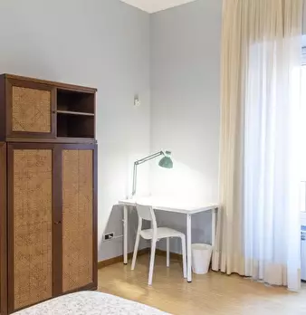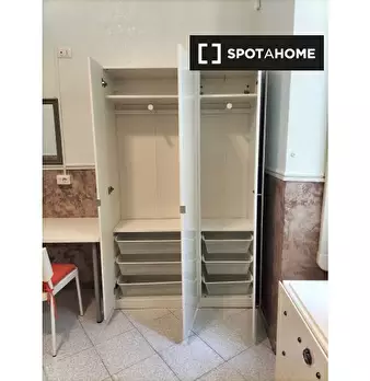 Questa spaziosa camera fa parte di un appartamento condiviso con 4 camere da letto situato nella zona esterna del Rione Esquilino, a Roma. L'appartamento è completamente arredato e dispone di aria condizionata individuale, riscaldamento e servizio...