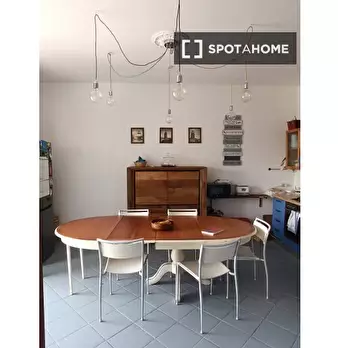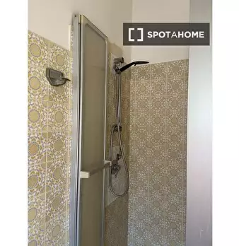 Questa camera in un appartamento condiviso con 5 camere da letto offre aria condizionata e riscaldamento centralizzati, vista sull'esterno e arredamento completo. La cucina attrezzata include un forno e una lavatrice è disponibile. Il Wi-Fi è incl...