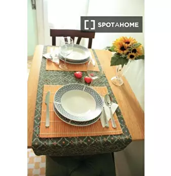 Scopri questa stanza in un appartamento condiviso con 2 camere da letto situato nel Rione Esquilino, a Roma. L'appartamento è completamente arredato e offre comfort come aria condizionata autonoma, riscaldamento centralizzato, cucina attrezzata co...
