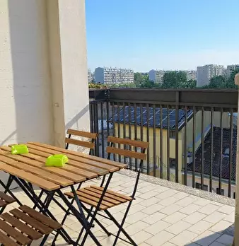Questo appartamento ha due camere da letto, ognuna con un letto matrimoniale e una propria unità di riscaldamento. La camera da letto 1 ha anche un bel balcone. Il soggiorno ha un divertente divano viola, un tavolo da pranzo per quattro persone e ...