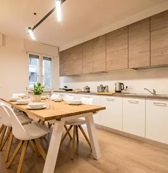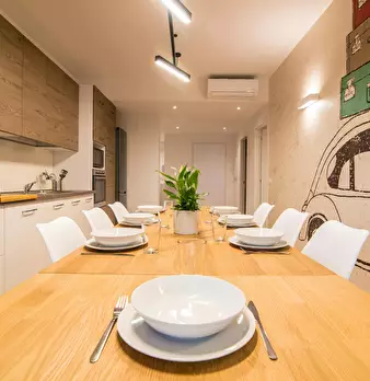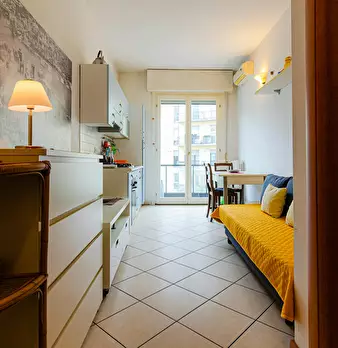 Quiet and centrally located apartment in the historic center of Bologna, within easy walking distance of the city’s main attractions. It consists of an entrance hall leading to a living room with a sofa bed, a Smart TV, a fully equipped kitchen, a...