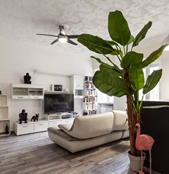 L'appartamento è al piano terra ma è come se fosse al 1° piano e ha una vista interna ed è composto da due camere da letto un soggiorno con angolo cottura e balcone e un bagno. Entrando in casa c'è un piccolo ingresso, sulla sinistra c'è la zona n...