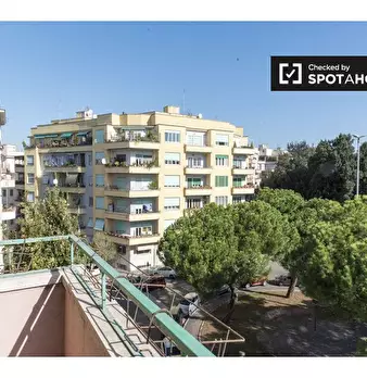 Scopri un appartamento condiviso con 3 camere da letto, selezionato da professionisti, situato a Nomentano, Roma. Questa proprietà esterna offre una cucina attrezzata, lavatrice privata, balcone e aria condizionata individuale. È completamente arr...