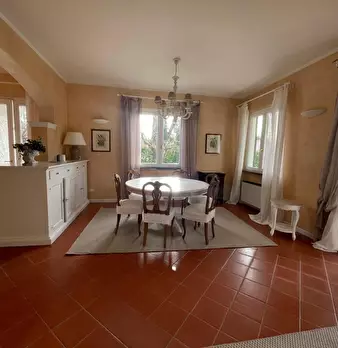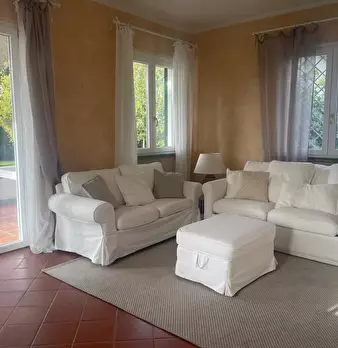 Forte dei marmi località Caranna a circa 650 metri dal mare, affittasi per la stagione 2026 Villa indipendente con grande giardino in perfetto stato di manutenzione composta da : ampio ingresso su zona living divisa in soggiorno e sala pranzo, cuc...