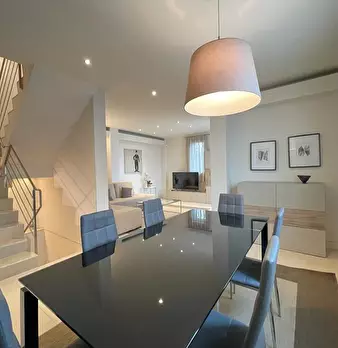Nel cuore di Forte dei Marmi a soli 400 mt dal mare, questa villa bifamiliare di 240 mq si sviluppa su quattro piani di cui uno interrato. Al piano terra troviamo il soggiorno, la sala da pranzo, la cucina ed il bagno per gli ospiti, dalla cucin...