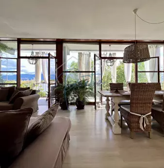 Bocca di Magra, vista fiume, in piccolo stabile bifamiliare e al piano primo e ultimo, affittiamo per un periodo transitorio (max 18 mesi), appartamento libero sui quattro lati di circa 80 mq oltre a comodo terrazzo. L'immobile internamente è c...