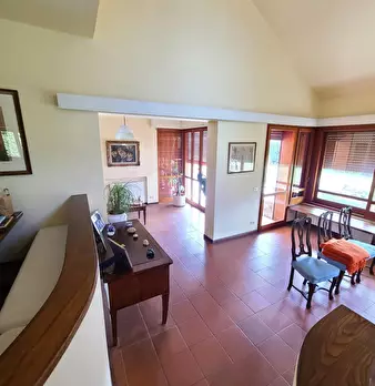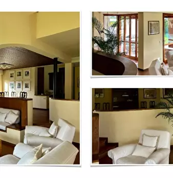Situata nella prestigiosa ed esclusiva zona di Roma Imperiale è una raffinata residenza anni'70, immersa in un ampio giardino privato di 3.000 mq. Gli spazi interni, caratterizzati da volumi generosi e arredi classici, tipici di quell’epoca, si ap...