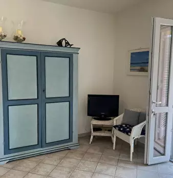 AbitarArt Real Estate propone in locazione estiva Rif. 346 Porzione di casa di 65 Mq al piano primo così composta: accesso esterno da balcone in sala con cucina open-space, camera matrimoniale, disimpegno con accesso a camera da letto con balcone ...