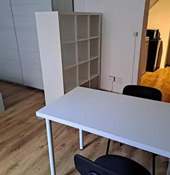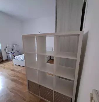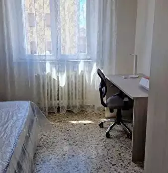 Camera da letto, completamente arredata (armadio, letto matrimoniale, comodini, cassettiera, scrivania) in appartamento luminoso e condiviso, dotato di due bagni, cucina abitabile, ripostiglio, sala lavanderia, tre camere da letto in totale. Risca...