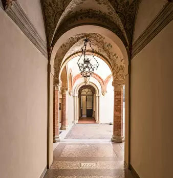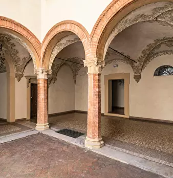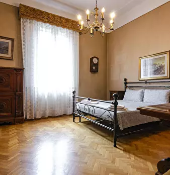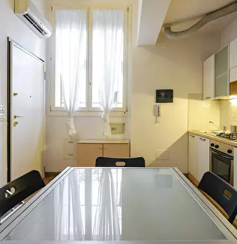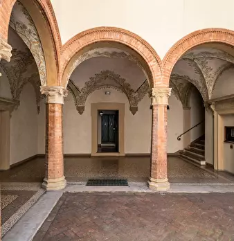 Spacious apartment in a known historical building, “Casa Berò”, great example of Bolognaise renaissance architecture and former atelier of the painters Carracci. Through an inner courtyard guests will reach the apartment located on the ground flo...
