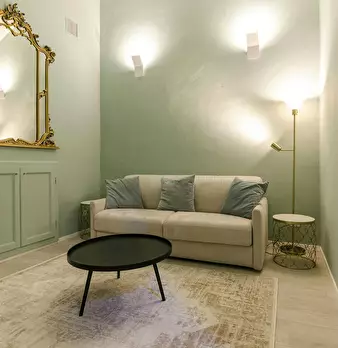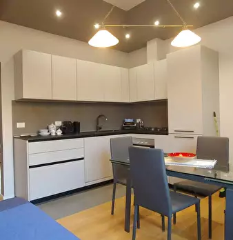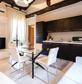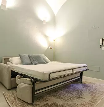 Spacious and elegant apartment in a historic building in the center of Bologna, just renovated with fine finishes. Composed of entrance to relaxation area with sofa bed and adjacent bathroom, large living area with fully equipped kitchen and islan...