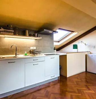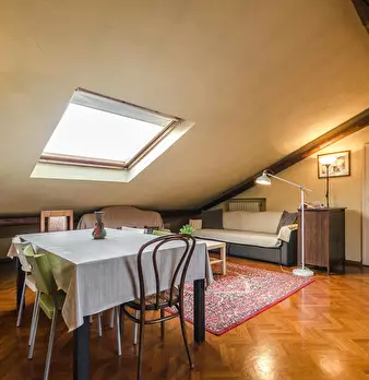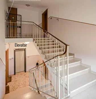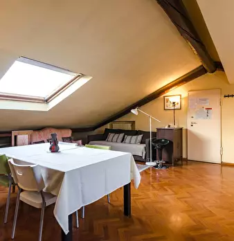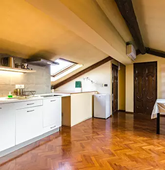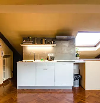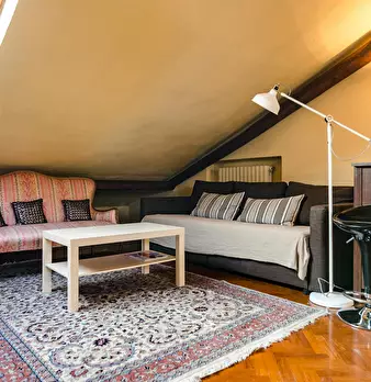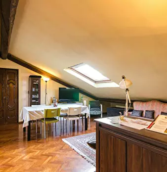 Attic apartment 5 minutes walk from the S. Ursula Polyclinic, a short distance from the historic city center and many university faculties and John Hopkins University. The apartment is located on the sixth floor of a building with a lift only up t...