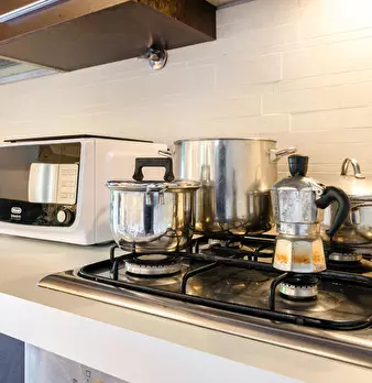 Molto servita,di bus ,banche ,supermercati farmacia ,residenziale strada privata 10 minuti dal centro città ( due torri),vicino al parco dei giardini margherita .Grande finestra con vista su giardino.Cuciba completamente attrezzata anche con lavat...