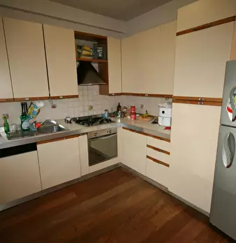 Appartamento arredato quarto piano con ascensore in palazzina residenziale a 50 metri dal mare. 80 mq ca. su due livelli collegati da scala interna. Cucina componibile con lavastoviglie. Lavatrice. Climatizzatore. Bancone nel soggiorno.