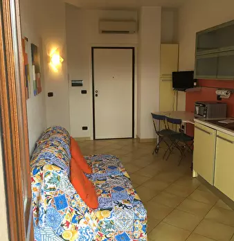Monolocale arredato con zona giorno formata da cucina, piano ad induzione , divano in pelle, tutto il necessario, aria condizionata, zona notte formata da letto matrimoniale, due lettini, oltre bagno. Il monolocale possiede ventilazione meccanica ...