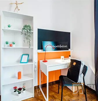 Zona Centro, bellissima stanza singola, ristrutturata appositamente per offrire comfort e comodità ai nostri studenti. La stanza è dotata di letto singolo, armadio, scrivania, specchio, 2 scarpiere, libreria. I colori delle pareti favoriscono il b...