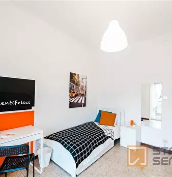 Zona Centro, bellissima stanza singola, ristrutturata appositamente per offrire comfort e comodità ai nostri studenti. La stanza è dotata di letto singolo, 2 comodini, armadio, scrivania, specchio, 2 scarpiere, libreria, poltroncina.. I colori del...