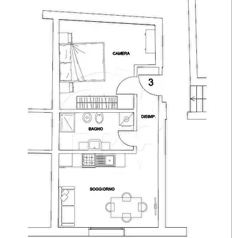SAN DONATO (Via Ranzani) da novembre A GIOVANE COPPIA LAVORATRICE (no studenti) stabile beneficiario di superbonus 110 p.2° senza ascensore piccolo trilocale quasi completamente arredato con ingresso, cucina semiabitabile, soggiorno, camera, bagno...