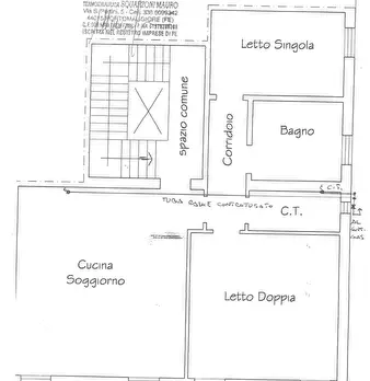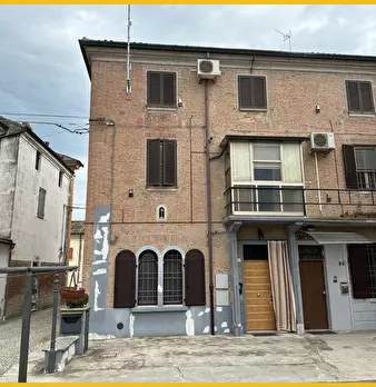 Denore (FE) centro paese. porzione di casa indipendente terra/cielo. P.T. ingresso indipendente, soggiorno con angolo cottura, bagno-P.1°. 2 camere da letto. termo autonomo. Cl.G. Posizione adiacente a fermata autobus-