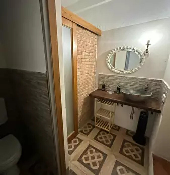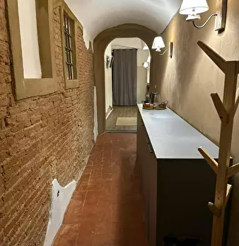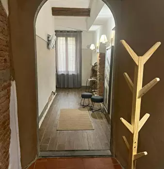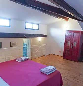 Simple and very intimate studio with a double bed and an open shower. Furnished in an essential way, keeping the original structure of the building intact while respecting the historical finishes. Equipped with a microwave, refrigerator and TV, WI...