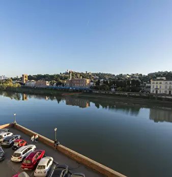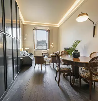 Discover the wonder of living in the beating heart of Florence, in a luxury apartment located on the second floor of a historic building with a breathtaking view of the Lungarno Alle Grazie. This exclusive residence is not just a place to stay, bu...