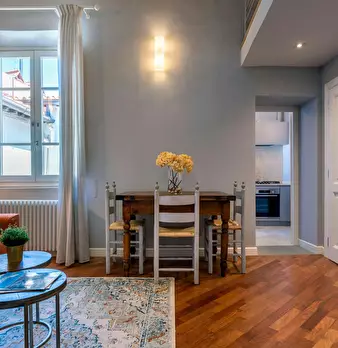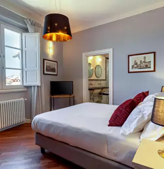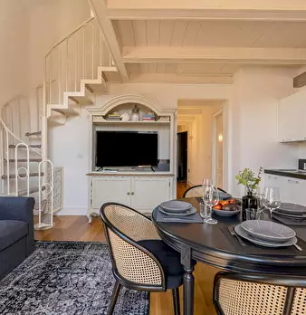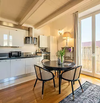 Located on the first floor of a charming Liberty-style building, this elegant apartment blends classic design with modern comfort, perfect for an unforgettable stay in Florence. Upon entering, a hallway leads to the bright living-dining area with...