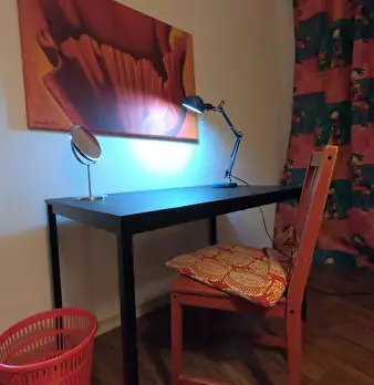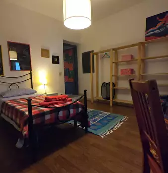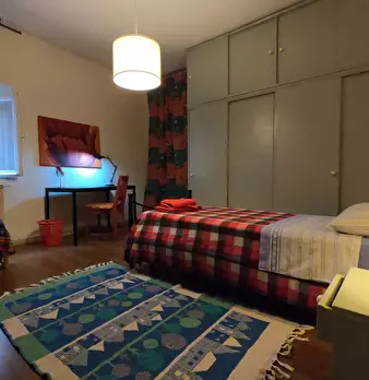 Spacious, bright, and comfortable room, composed of a single bed, chest of drawers, coat rack, a desk, and a chair. The room is situated in an apartment on the last floor with an elevator, with two other single bedrooms, one bathroom, a totally e...