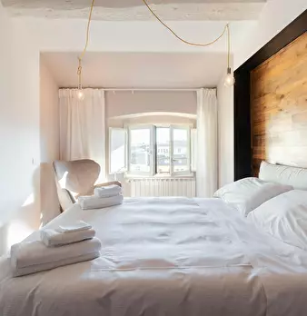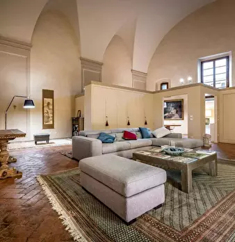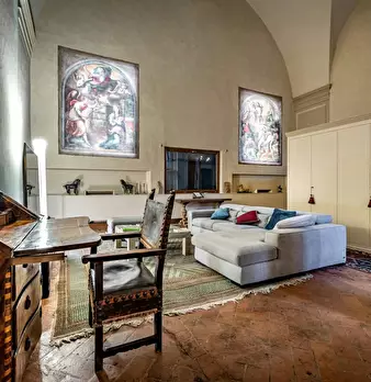 Truly a dream location, this incredibly unique apartment is nestled within a deconsecrated church. It's a captivating space that was once a choir loft where cloistered nuns would attend Mass while gazing through the large window towards the stunni...