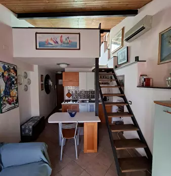 INTERA PROPRIETA' massimo di 2 persone in coppia (letto matrimoniale) Appartamento composto da ingresso, bagno, soggiorno con angolo cottura, letto su soppalco, terrazza panoramica rivolta al Parasio. Vista scorcio di mare. L'appartamento si trova...