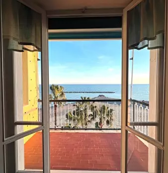 rif.26 – San Bartolomeo al Mare TRILOCALE fronte mare palazzina signorilepiano alto con ascensore terrazzo vivibile con bellissima vista mare esposto a sud-est angolare.appartamento composto di ingresso ripostiglio con lavatrice bagno con finestra...