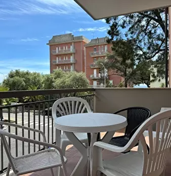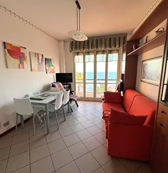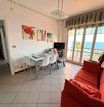 Rif.13-San Bartolomeo al Mare in palazzina fronte mare Bilocale ristrutturato e arredato a nuovocomposto da ingresso soggiorno con angolo cottura camera e bagnoterrazzo con vista mare riscaldamento autonomo a gas metano aria condizionataarredato ...