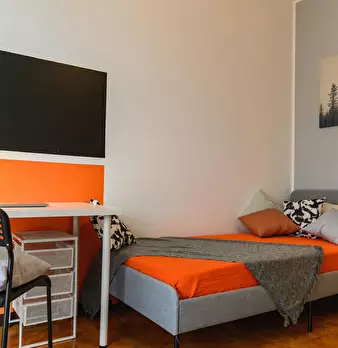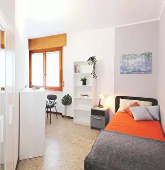 singola, luminosa e completamente arredata, ideale per studenti che cercano tranquillità e comfort. È dotata di letto singolo, armadio a 3 ante, cassettiera, libreria, scrivania con portaoggetti, comodino, scarpiera e tendaggi. Situata in una zona...
