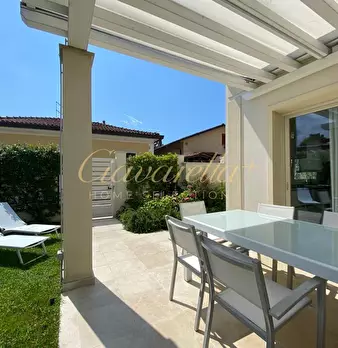 Centro di Forte dei Marmi, a due passi da tutti servizi e a soli 200 metri dal mare. Villetta abbinata nuova con una corte esterna e bella veranda per mangiare all'aperto. Composta: al piano terra soggiorno, cucina con sala pranzo e accesso nella ...