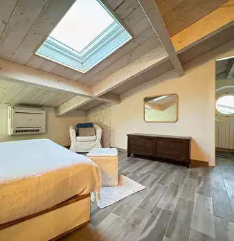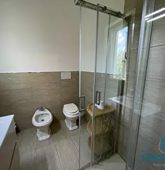 AbitarArt Real Estate propone in locazione Rif. 222 Porzione di Villetta con ampio giardino privato, così composta: ingresso, cucina abitabile, sala con veranda attrezzata, bagno al piano terra; camera matrimoniale con angolo armadi e bagno privat...