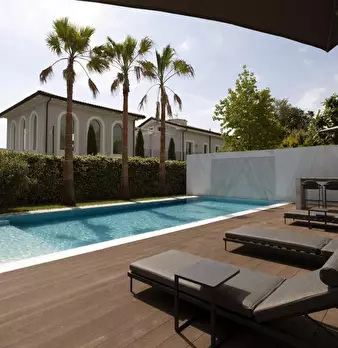 Forte dei Marmi - Centro - Nel cuore del centro storico di Forte dei Marmi, a soli 100 metri dal mare, si affitta questa villetta monopiano con una deliziosa resede esterna frontale con tavolino, ombrellone e accoglienti divanetti per i momenti di...