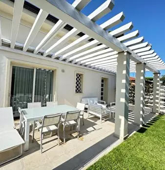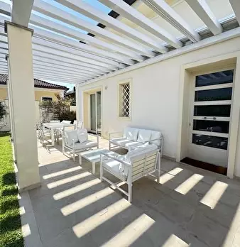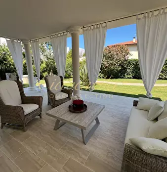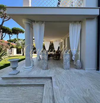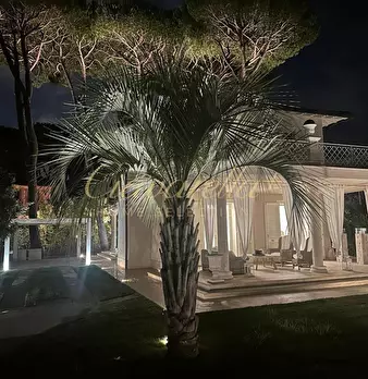 Questa splendida villa in affitto stagionale si trova nel cuore di Forte dei Marmi, nella zona centrale più prestigiosa e esclusiva della città. Si sviluppa su un unico piano, il piano terra, con una superficie totale di 150 metri quadrati. L'ingr...