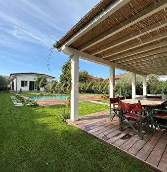 In una delle località più esclusive della Versilia, Forte dei Marmi, si trova questa splendida villa con piscina di recente costruzione in affitto, situata nella zona di Vittoria Apuana. La villa, che si sviluppa su una superficie di 230 mq, è co...