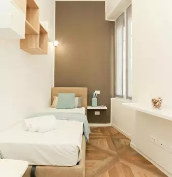 Italian LARGE AND BRIGHT SINGLE ROOM IN A TWO-BEDROOM APARTMENT FOR A TEMPORARY FEMALE UNIVERSITY STUDENT The room is in a two bedroom apartment close to Milan’s city center and particularly convenient for Cattolica-Sacro Cuore, Bocconi and IULM...